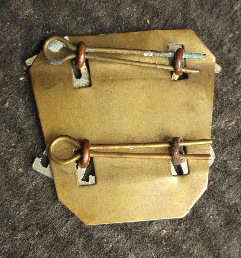 vintage hard metal OTC shoulder title approx 2" by 1.6" with four lug type fittings and brass plate. signs of age and use etc .