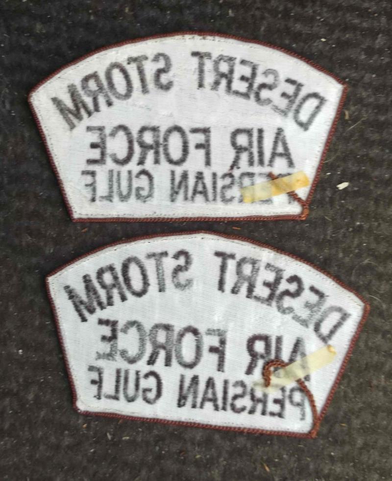 a vintage pair of patches i assume for veterans caps. each approx 5" by 3" with signs of age etc