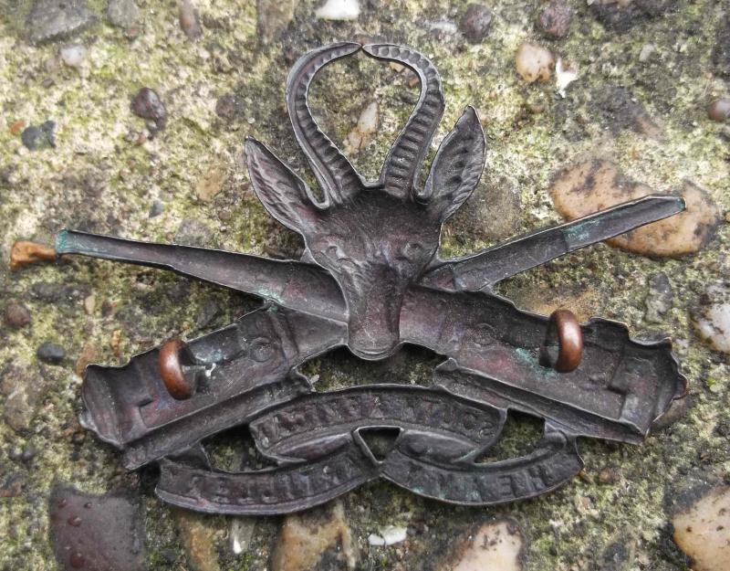 a circa Great War era SA army cap badge. British Empire period. approx 2.3" by 1.6" with lug fittings on the reverse. signs of age and use etc.