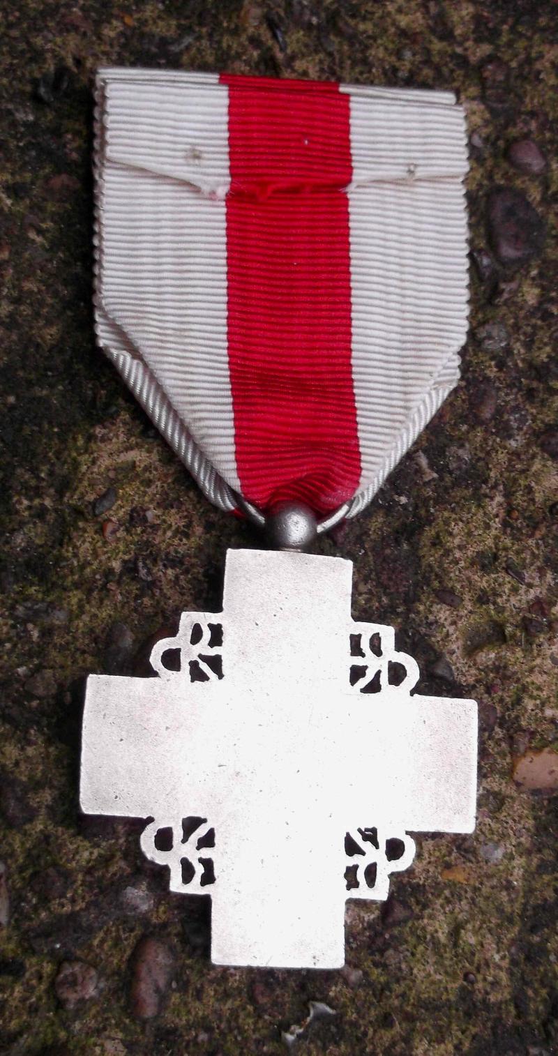 a reasonable example of the first version of the medal of recompense from 1940 to 1950. approx 1.5" by 1.35" plus ribbon etc.The French Red Cross did not come into being until 1940 when the Société Française de Secours aux Blessés Militaires, the Association des Dames Françaises and the Union des Femmes de France merged under a decree issued by Marshal Pétain.