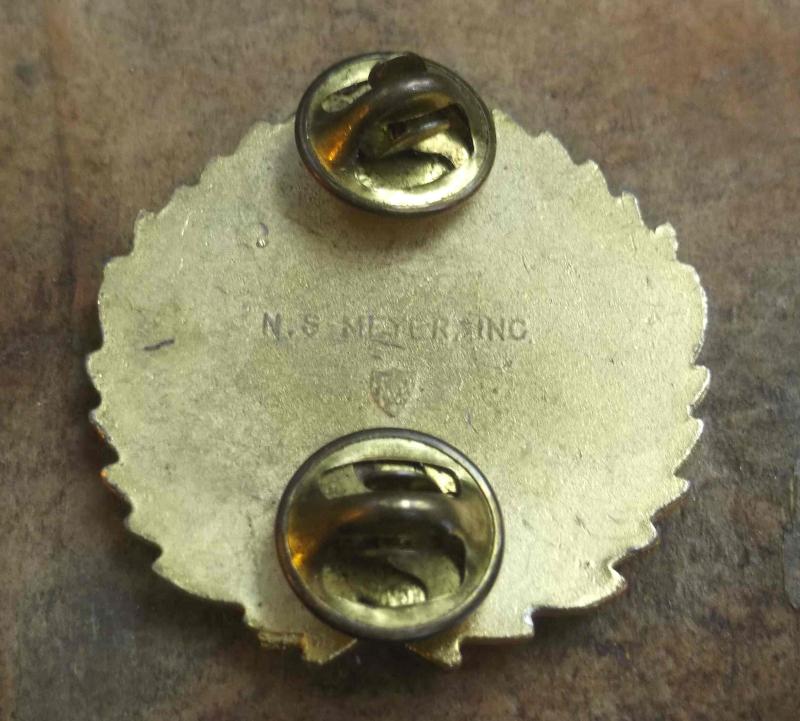 a Cold War era pattern completion of training award. slight name difference to the more modern version i think. approx 1.5" diameter with two pin backfittings on the reverse. made by Meyer Incorporated.