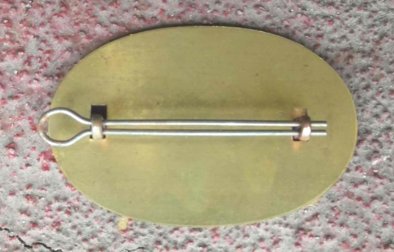 a post War emblem for the two regiments honours of the 1st Bn Border Regiment and 2nd Bn South Staffordshire Regiment. Brass metal approx 2.5" by 1" with lugs and slider fitting and backing plate.