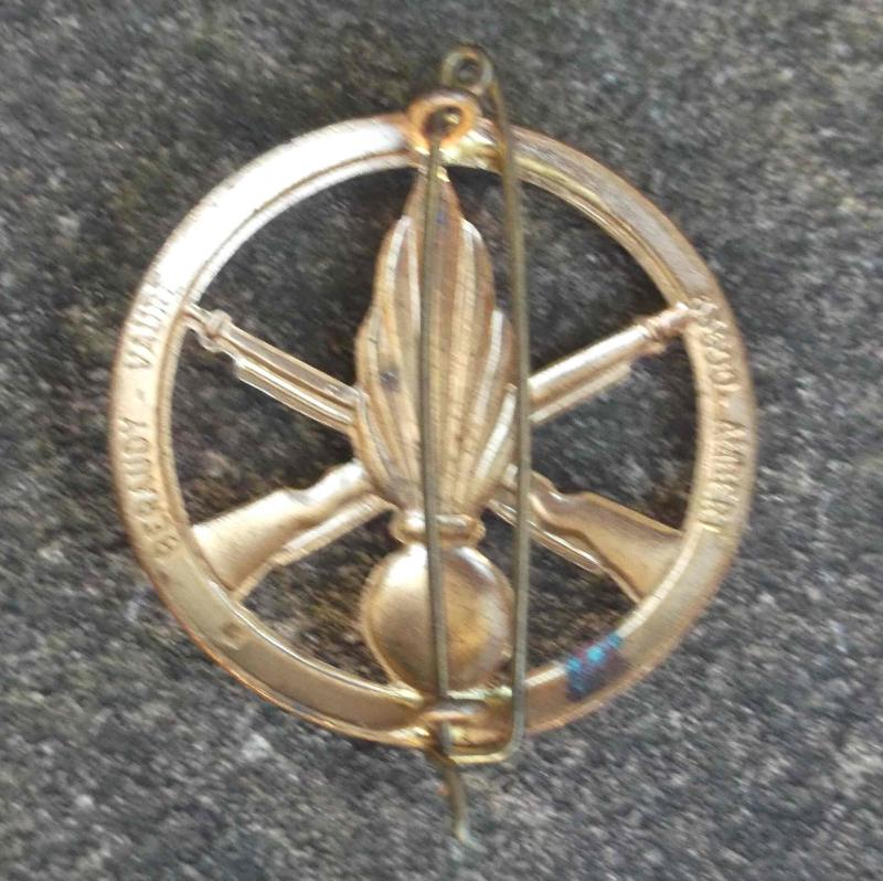 a bit of age and apparently used French beret badge. approx 1.75" diametre. maker marked on the reverse.