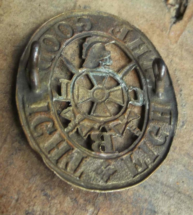 an old looking hard brass tone metal cap badge approx 1.85" by 1.5" with lug type fittings on the reverse.Signs of age and wear.