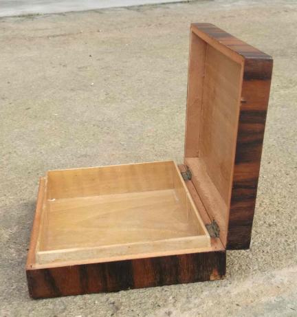 an attractive wooden box bearing the emblem of this famous former Regiment. approx 6.25" by 5.5" by 1.75". some damage to the veneer in places. still looks great. might benefit from restoration.