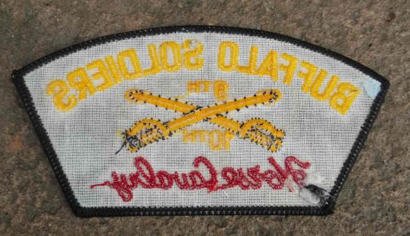 machine embroidered veterans patch for these historic units. looks like its for a baseball cap approx 5.3" by 2.8".