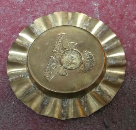 British Army Lancashire Fusiliers Brass Metal Ashtray with Emblem