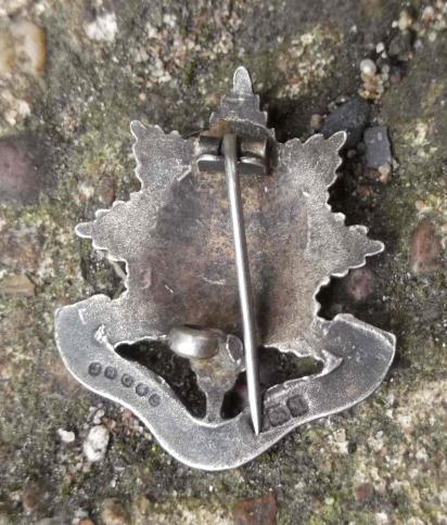 well made old hm silver and enamel badge for veterans of this famous regiment of Foot Guards. approx 1.25" by 1.15". brooch pin type fitting on the reverse. good used condition with signs of age and use.