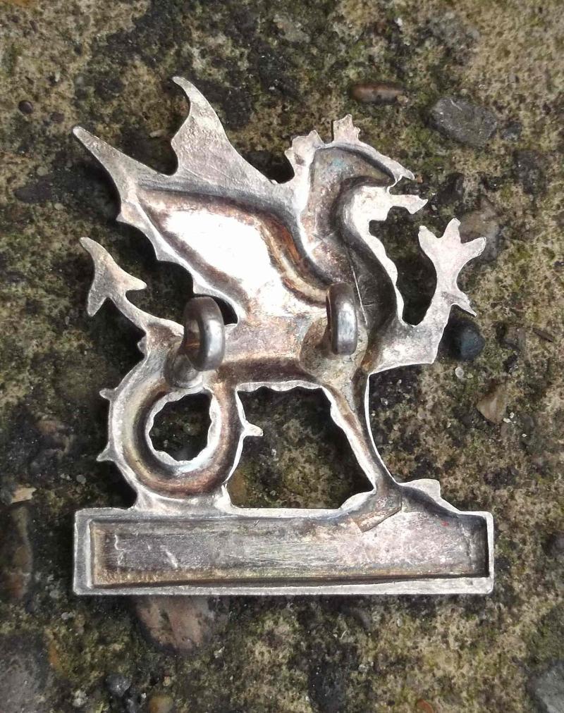 an interesting Officer and probably Senior NCOs pattern cap badge of these former Brigade or the short lived Regiment. approx 1.5" by 1.25" with lug fittings. no visible silver mark so it may just be plated. sold as is.