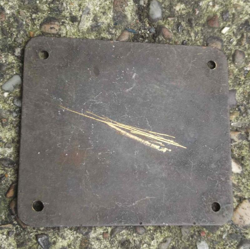 an old heavy metal transit case plate for a Vickers 3.5" pattern gun . Not sure if this was the howitzer or anti aircraft version. approx 4.15" by 3.6".