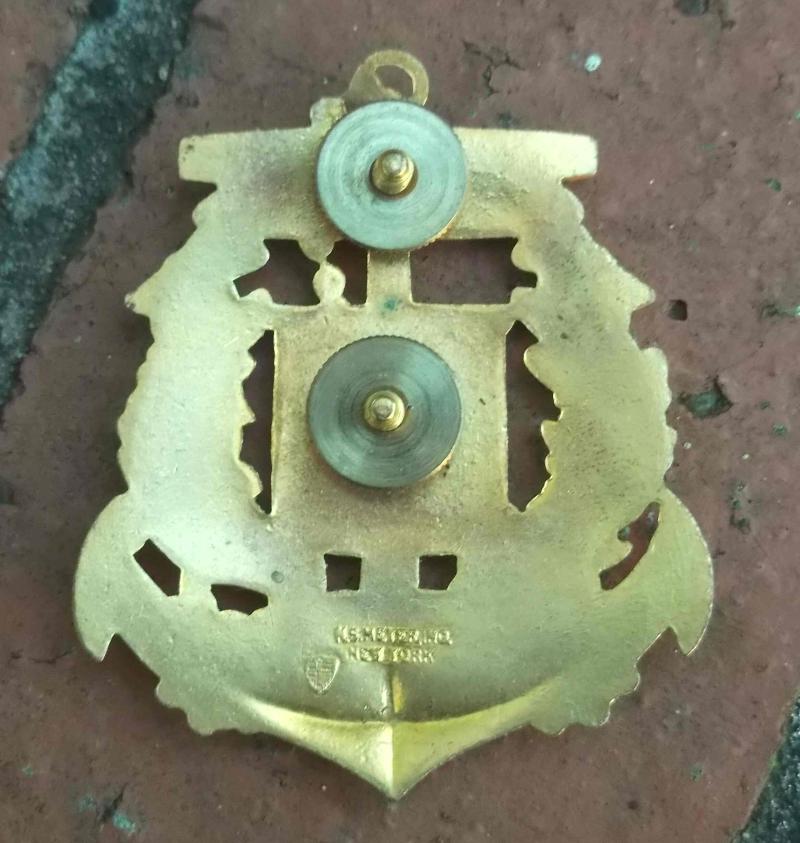 old pattern Dominican gilt and enamelled cap badge by Meyer New York. good condition. approx 2.55" by 2.05". good condition. relatively scarce.