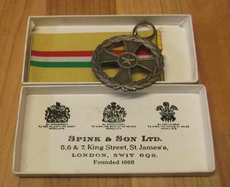 an interesting one. a UK made version in its original case. approx 1.55" diameter plus loop and ribbon.