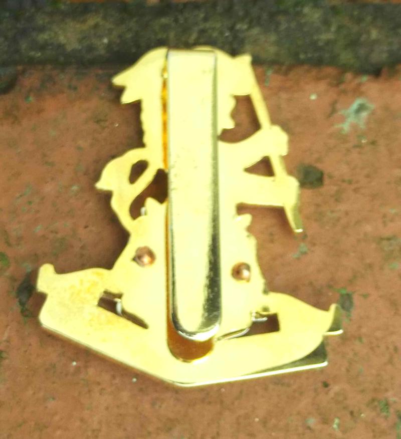 a nice looking bright hard metal version army cap badge. i assume for parade or similar use. approx 1.75" by 1.5" with slider fitting. a little bit of age to this one.