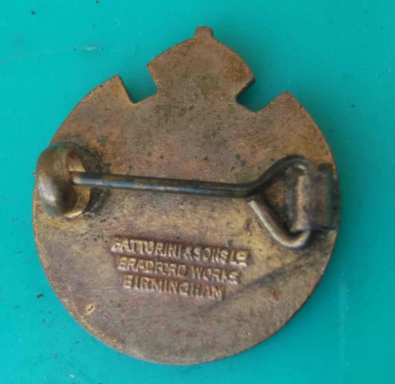 a vintage 1945 to 1948 pattern association badge approx 0.75" diameter plus packaging . First pattern cap emblem with crown of King George VI.Maker marked on the reverse.